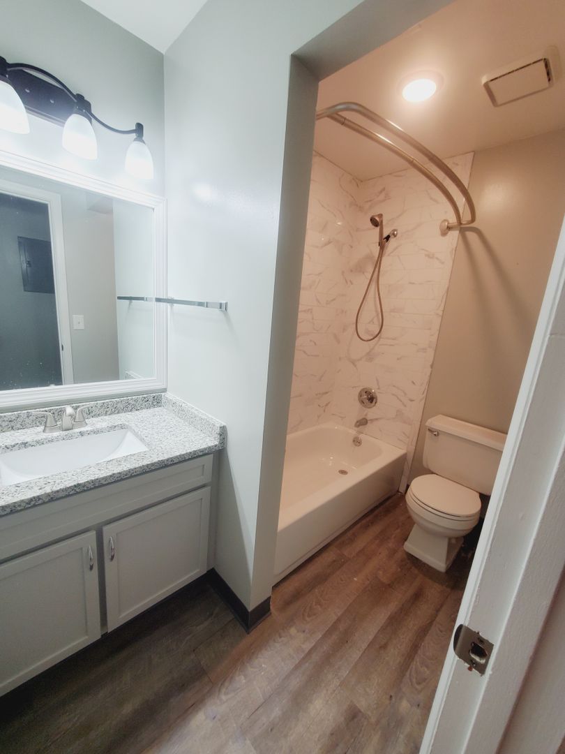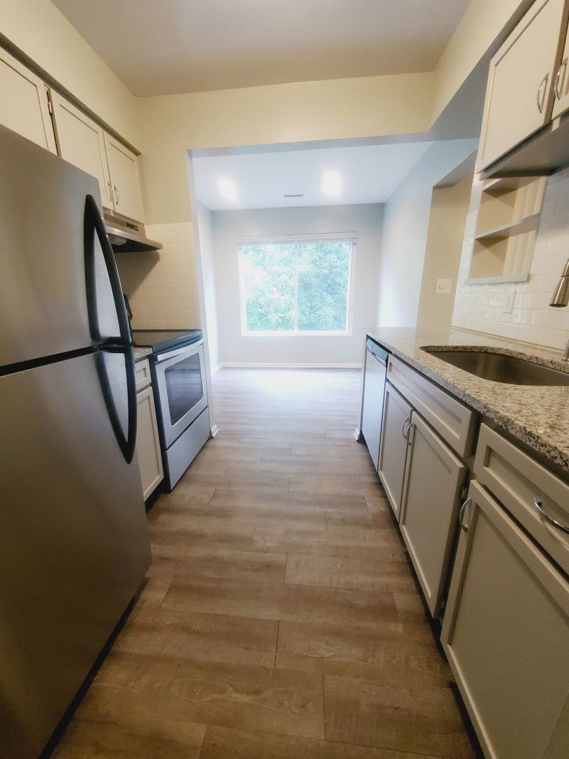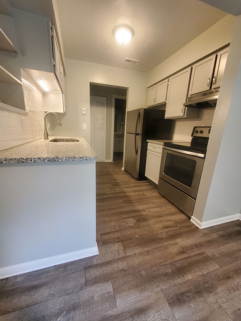 This apartment has refurbished cabinets, granite counter tops, stainless steel appliances, ceiling lights in every room, and a remodeled bathroom. It is located on the 3rd floor with a pretty view off the balcony.